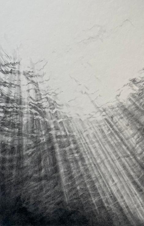 This set of drawings should really be a quadtych really with the fourth being completely white, the light through the trees growing brighter, bleaching life away.